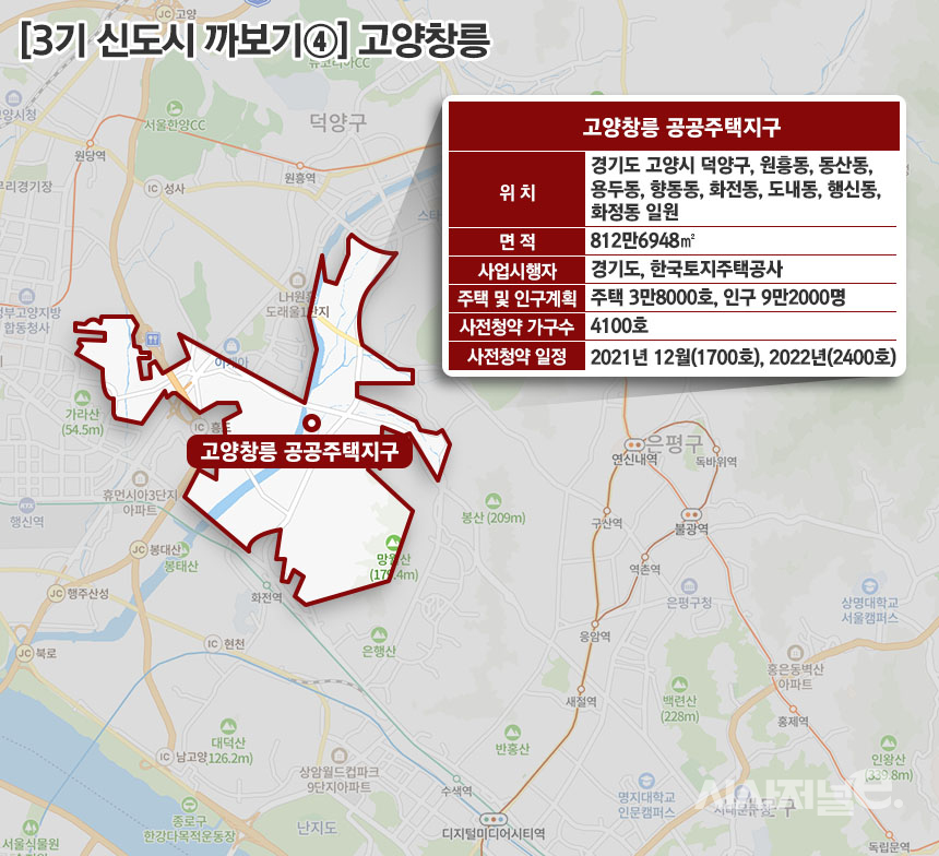 오늘은 고양 창릉신도시를 살펴보겠습니다. 238만7천평 이상 부지로 2020년 지정, 2029년 준공 예정이다. 원흥동, 동산동, 용두동, 향동동, 화전동, 돈내동 일대에 건설된다. , 덕양구 행신동, 화정동, 성사동 일대이며 주택수는 36,000가구, 인구는 86,000명이다. 수용할 계획입니다. 위치를 보면 시청에서 약 5km 정도 떨어진 곳에 위치해 있다.
