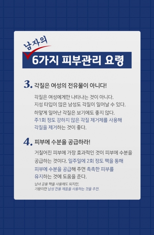 안녕하세요. 1:1 맞춤 피부 상담을 진행하는 시흥휴먼피부과(구 시흥 미소가인 피부과) 입니다. ^^ 피부관리 하면 남자들이 여자들이 많이 한다고 생각하는 경우가 많습니다. 요즘은 남자든 여자든 피부 관리가 필요합니다. 그 이유는 깨끗한 피부는 다른 사람에게 깨끗하고 좋은 첫인상을 남길 수 있기 때문에 평소에 피부 관리를 잘 해주는 것이 중요합니다. 우리는 이것을 권장합니다. 남성분들은 피부관리에 어려움이 많으신데요, 오늘은 남성분들의 피부관리 방법에 대해 자세하게 알려드릴테니 꼭 참고해주세요. 지금부터 남성 피부관리에 대해 알려드리겠습니다.