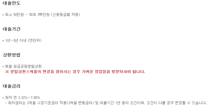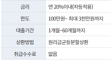 직장인, 자영업자, 무직자 등 직업에 관계없이 무상대출(신용불량대출)을 받을 수 있습니다. 다만, 대출 상품을 비교하고 선택하는 과정에서 몇 가지 유의할 사항이 있습니다. 대출을 찾을 때는 여러 당사자를 살펴보고 최종 결정을 내려야 합니다. 현 상황에서 한도, 금리, 상환방법 등을 비교하여 최종적으로 유리한 업체를 선택하는 것이 가장 좋은데, 이 과정에서 대출상품 비교에 많은 시간과 에너지를 투자해야 하지만, 대출상품 비교 후 결정을 하더라도 대출이 승인되지 않을 수 있습니다. 이 경우 승인률도 매우 중요한 부분이기 때문에 대출 승인률이 높은 금융회사부터 시작하는 것이 너무 많은 문의로 인해 진행이 불가한 상황을 방지하는 지름길입니다. 하지만 신용카드 대출자는 실업자와 거의 같은 수준으로 평가돼 대출을 받기 어렵다. 반면 실업급여의 경우 연체된 대출이나 연체된 대출이 없으면 대출을 신청할 수 있기 때문에 신용카드 소지자는 대출 신청이 더욱 어려우며, 대출업에서도 담보를 확인하고 대출을 신청하는 경우가 많다. 따라서 해당하는 경우 참조하십시오. 또한 신용카드 대출을 고려할 때 고려해야 할 대출 금리나 상환 기간도 있으므로 이 점을 면밀히 따져볼 필요가 있다. 신용회복위원회미소소민생활자금대출 신용회복위원회미소소민생활자금대출은 신용등급과 소득수준이 낮은 경우에도 이용할 수 있는 정부지원 저금리 대출입니다. 대출대상 – 개인신용등급이 20% 미만이고, 상위계층이거나 기초생활수급자 또는 근로장려금을 받는 경우 가정/다문화가구주, 북한이탈주민, 장애인, 특별재난지역/고용재난지역/산업위기특별지역 거주자 대출가능 금리 : 연 2.5~3% 대출기간 : 5년 이내 . 연소득 3,500만원 미만 또는 – 연소득 3,500만원 이상, 개인신용등급 4,500만원 미만, 개인신용등급 20% 미만 대출금리 : 연 10.5% 이내 대출기간 : 5년 이내 상환자 신용카드(KB국민) 발급내역 국민은행 신용회복위원회 전세계여신 부실신용(포상) 소액대출 신용정보 조기삭제, 일시 전액납부 추가감면, 취업촉진, 신용향상 지원 300만원 단순대출 고금리 대체자금 최저신용, 실업자 서신특례보증 대출 – 농협긴급자금 농협긴급자금대출은 직업, 소득과 관계없이 소액대출 비상금 상품으로 만 19세 이상 신청 가능합니다. 개인 통신 등급이 9 이하인 개인은 대출을 신청할 수 있습니다. 개인 대상 ※ 통신3사(SKT, KT, LG U+)이용자에 한함 통신등급은 직업, 소득과 관계없이 산정 가능 대출한도 : 최소 50만원 ~ 최대 300만원 대출금리 : 연 6.72~7.92%(22.11.27 기준) 대출기간 : 최대 3년 상환방법 : 원리금상환상환 1개월 동안 대출회생계획을 충실히 이행 대출한도 : 최대 700만원 대출금리 : 연 3.8% 이내 대출기간 : 최대 5년 IT 전당포이며 금융기관이 아니기 때문에 무담보 고객에게도 제공하고 있습니다. 신분증만 있으면 별도의 서류 준비가 필요 없이 편리하게 이용할 수 있으며, 대출 기록이 남지 않는다는 점도 장점이다. 대출한도는 담보도매가격의 80~90%까지 가능한 것으로 알려졌다. H. 에버그린워터제일유동화전문주식회사, 신용회복위원회, 신용회복위원회는 신용회복 지원 접수 후 6개월 이상 지원받은 자에 대하여 성실상환 또는 3년 이내 전액상환 7대여 소액긴급자금 신용점수 500점 이하 무직자대출(KCB, NICE) 9종 당일대출 가능(통장 제외) 신용점수 35소액대출 20세 이상 0 개인신용도 20% 미만 현지인 근로자 햇살론, 채무불이행자에게 10등급 대출 제공