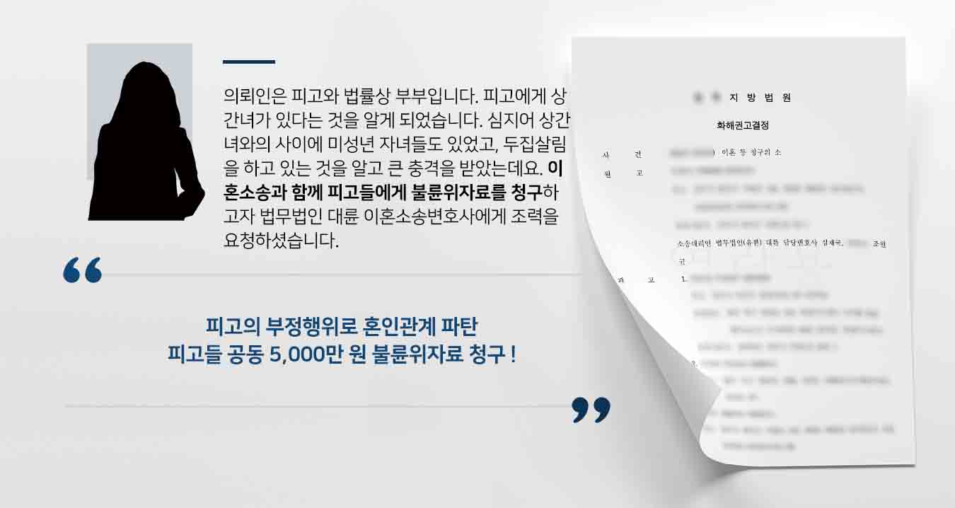 최근 디딤에게 재혼 및 이혼소송에 관한 문의나 상담을 요청하는 분들이 눈에 띄게 늘었습니다. 반응은 초혼부부의 반응과 크게 다르지 않지만, 재혼재산분할 등의 문제가 좀 더 복잡해 다소 차이가 있을 수 있다. 우리가 처리한 사건의 의뢰인은 이전 관계에서 두 자녀를 둔 남편이었습니다. 만나서 다시 결혼하고, 결혼 18년 만에 헤어지는 이야기를 담았습니다. 특히 상대방 배우자, 즉 남편이 먼저 소송을 제기해 가정법원에서 타협 없이 법적 다툼을 벌이게 됐다. 의뢰인이 헤어지기로 결심하게 된 사연은 무엇이고, 이번 소송의 결과는 어땠나요?