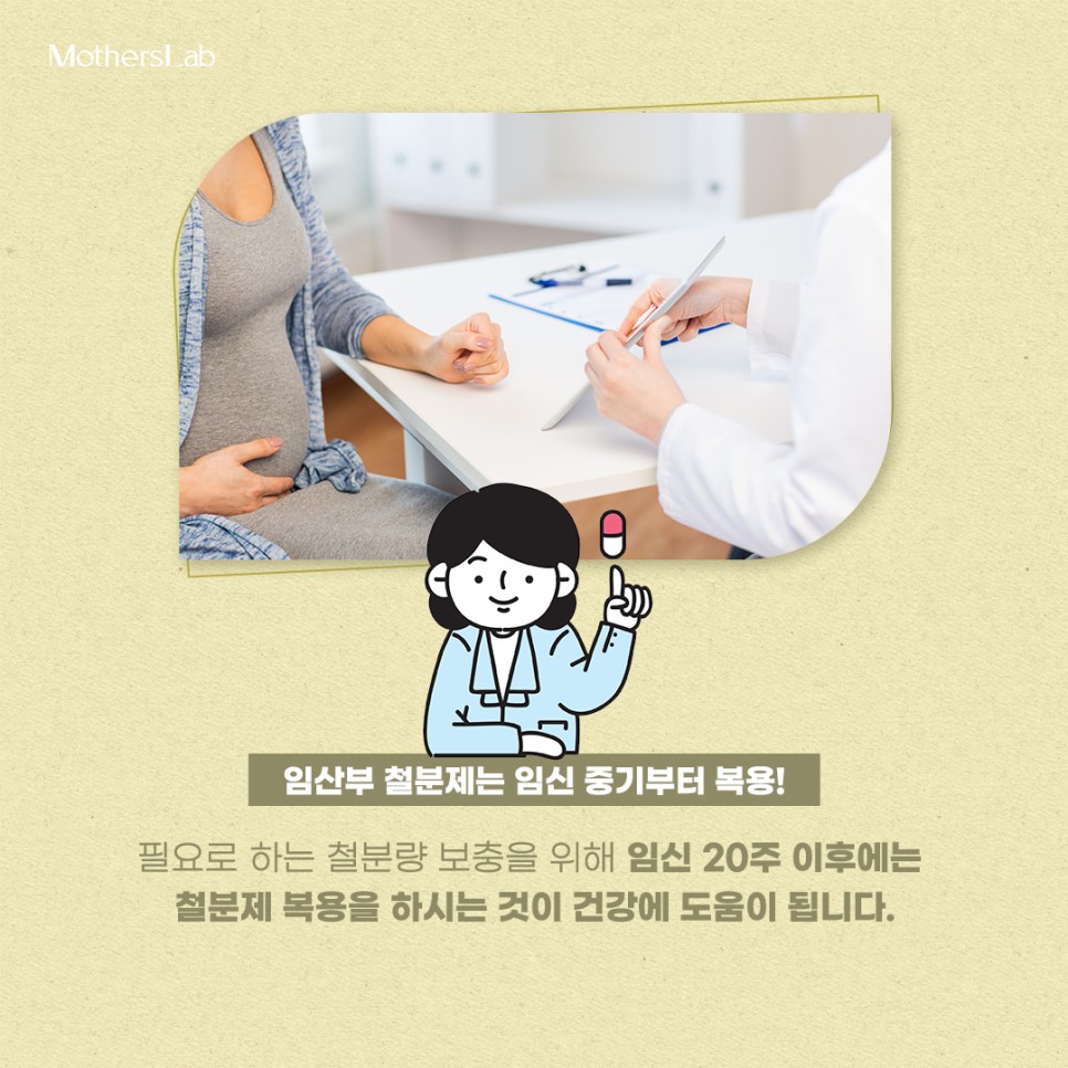 기간은 임신 2기(16~20주)부터 출생 후 3개월까지이다. 초기에는 필요한 철분의 양이 적어 굳이 섭취할 필요는 없으나, 중기에는 자궁 속 태아의 성장이 빨라지고 자궁과 태반의 혈관이 확장된다. 기간이므로 이 때부터 수강하시는 것을 추천드립니다. 따라서 최소 20주 전에 복용하는 것이 좋습니다. 또한, 출산 과정 중 출혈량이 많고 수유량이 많기 때문에 출산 후 3개월 동안 복용하는 것이 좋습니다.