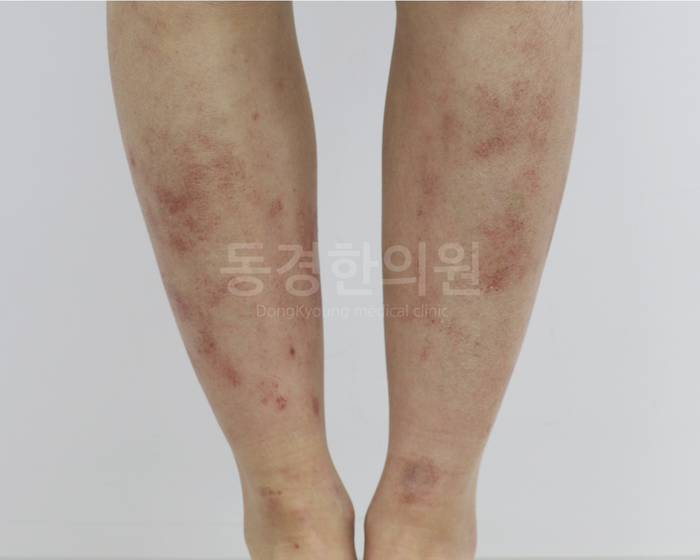 위 환자분은 감기와 함께 자반증 증상이 있었는데 감기와 자반병 증상이 심하지 않아 병원에서는 감기약만 먹고 관찰에 주의하라는 지시를 받았고 처음에는 자반병이 나았다고 생각했습니다. 그러나 약 1~2주 후, 우리 환자분은 뚜렷한 이유 없이 자반증 증상이 다시 나타나며 처음보다 훨씬 더 심해집니다. 결국 동경한의원에 내원하여 3개월의 치료기간 동안 자반증의 증상이 완전히 사라졌으며, 치료 후에도 1년 이상 재발이 없다고 연락을 주셨습니다. 그녀의 삶은 매우 건강합니다.